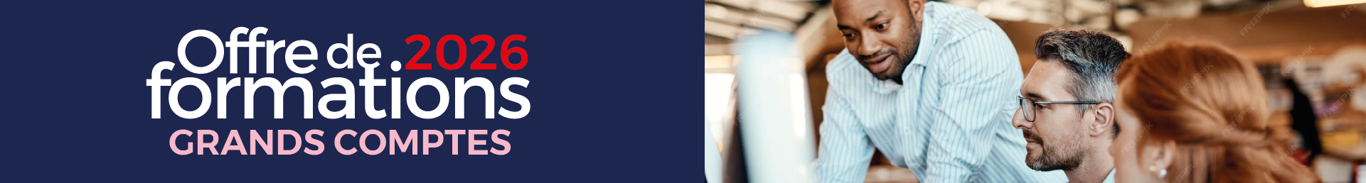 Explorez l’ensemble des solutions de formation dédiées aux entreprises de plus de 50 salariés ! Conçu pour accompagner vos priorités actuelles, ce catalogue réunit des formations concrètes et opérationnelles pour anticiper les évolutions et renforcer votre expertise. Parcourez les thématiques, cliquez sur la formation qui vous correspond et adressez votre demande d’inscription en toute simplicité.